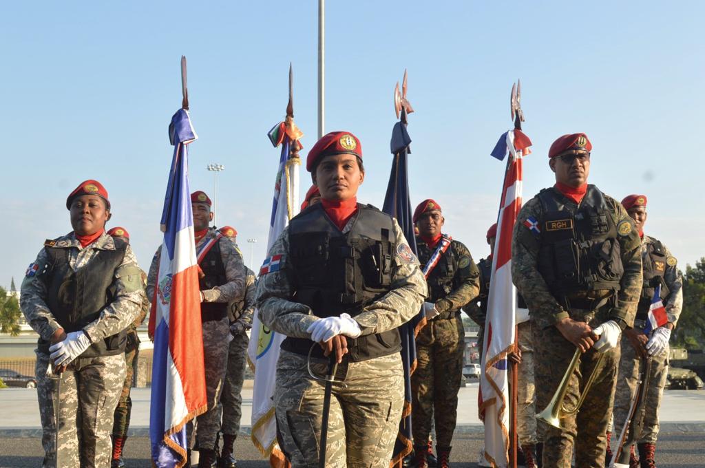 SANTO DOMINGO. – En ocasión de conmemorarse el “Día Internacional de la mujer”, mujeres militares de las diferentes fuerzas y adscritas a las dependencias del Ministerio de Defensa (MIDE), participaron en los honores correspondientes al lienzo patrio, realizado como es costumbre en el frontispicio del edificio principal.
