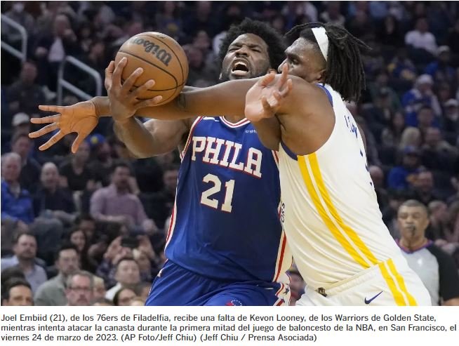 Embiid volvió a la duela con 8:26 en el reloj de juego y anotó 13 puntos al hilo en su camino a terminar con 46, pero los Warriors descontaron una desventaja de 11 unidades para conseguir su novena victoria seguida en casa, y una de las más importantes en su pelea por terminar en zona de playoffs.