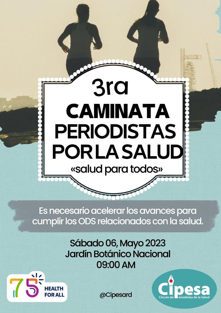 Santo Domingo, RD. – El Círculo de Periodistas de la Salud (Cipesa) realizará el sábado 6 de mayo la tercera Caminata de Periodistas por la Salud con el objetivo de motivar a esos profesionales a realizar actividades físicas.