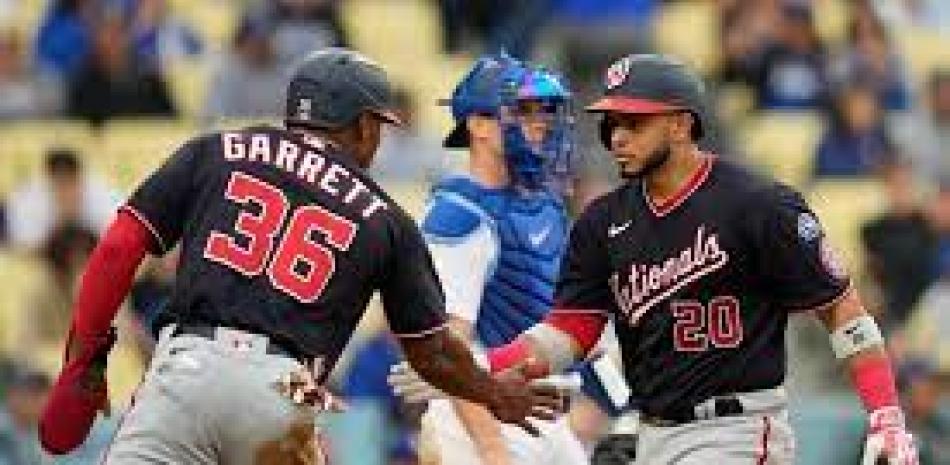 Luis García rompió el empate con un jonrón de tres carreras en la octava entrada, el venezolano Keibert Ruiz aportó dos vuelacercas entre los cinco que totalizó Washington, y los Nacionales evitaron la barrida en la serie, al derrotar el miércoles 10-6 a los Dodgers de Los Ángeles.