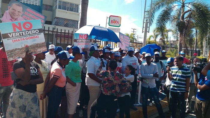 Decenas de personas realizaron una protesta frente al Ayuntamiento de Santo Domingo Norte en demanda de que ese cabildo y sus autoridades desistan supuestamente de apoyar a un grupo de empresarios que buscan instalar un relleno sanitario en su sector Mata Gorda.