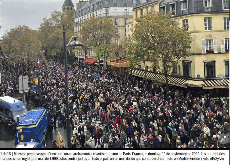 Las autoridades de París desplegaron 3.000 policías a lo largo de la ruta de la protesta convocada por los líderes del Senado y de la cámara baja del parlamento, la Asamblea Nacional, en medio de un alarmante aumento de los actos antijudíos en Francia desde el inicio de la guerra de Israel contra Hamas después de su octubre .7 ataque sorpresa a Israel.