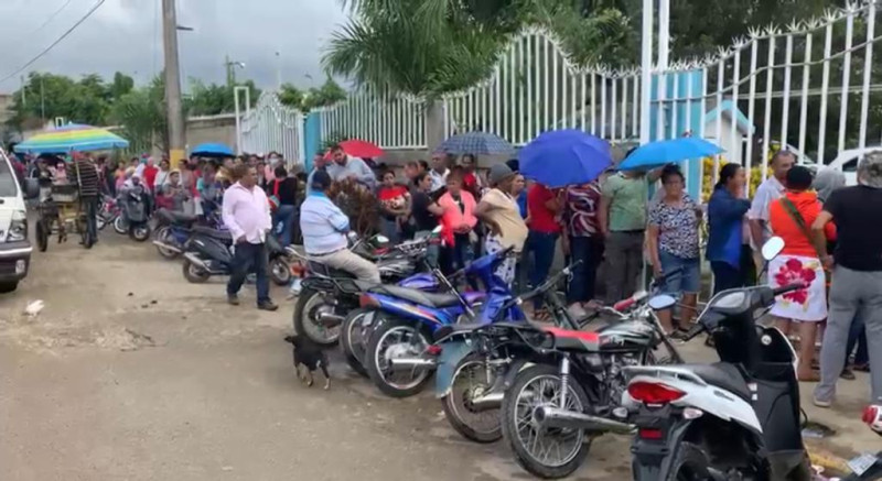“Yo estoy desde la cuatro de la mañana aquí, yo sufro de la columna y aquí nadie avanza y aquí a nadie lo dejan entrar”, narró una de las personas que intenta hacer el cambio de tarjeta.