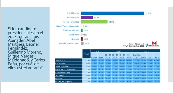 Este fue el resultado obtenido por Markestrategia en una encuesta nacional realizada del 7 al 9 de diciembre de 2023 a un universo de 1,200 personas.