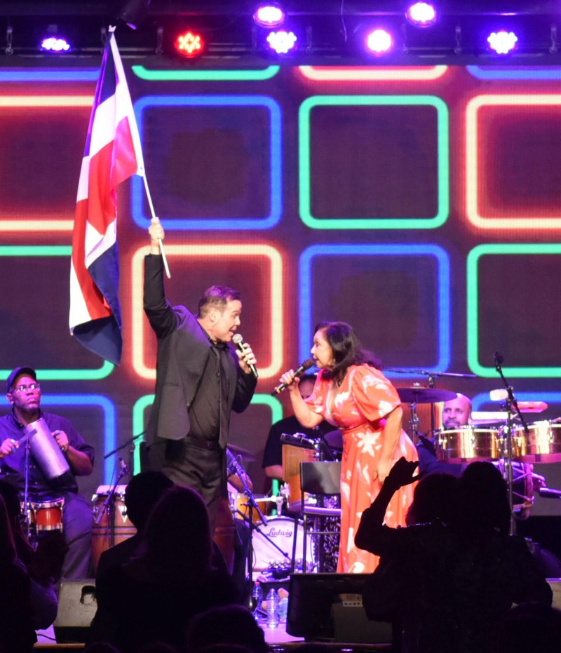 En este cuarto encuentro el público recibió con algarabía las actuaciones de Adalgisa Pantaleón que, primero, junto a Frank Ceara interpretaron el tema “Tierra prometida”, canción que aprovecharon para ondear en el escenario la bandera dominicana.