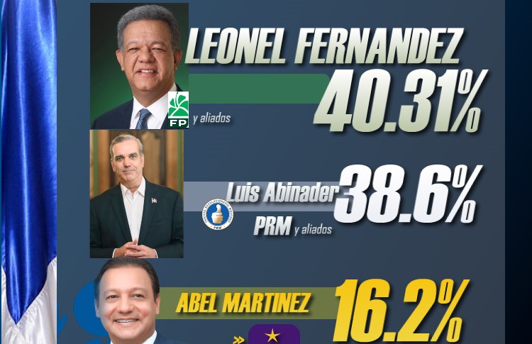 SANTO DOMINGO.- Si las elecciones presidenciales fueran hoy, Leonel Fernández obtendría 40.31% de los votos, Luis Abinader 38.6% y Abel Martínez 16.2%, según una encuesta del Centro de Investigaciones y Estadísticas (CIE).