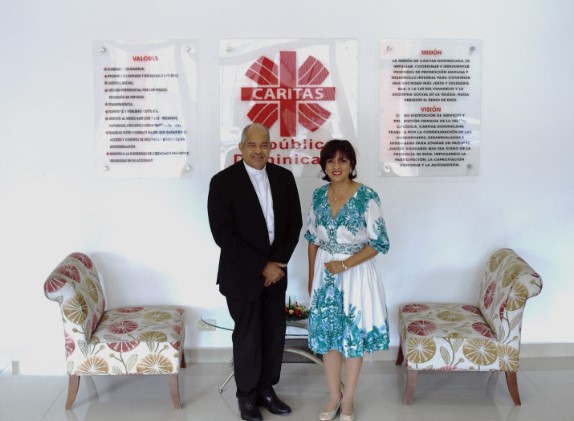 Fue Monseñor Julio César Corniel Amaro, presidente de Caritas Dominicana y obispo de la Diócesis de Puerto Plata quien recibió a Leonor Cruz en la Oficina Nacional de Caritas para darle formal bienvenida y hacerle entrega de su nueva función.