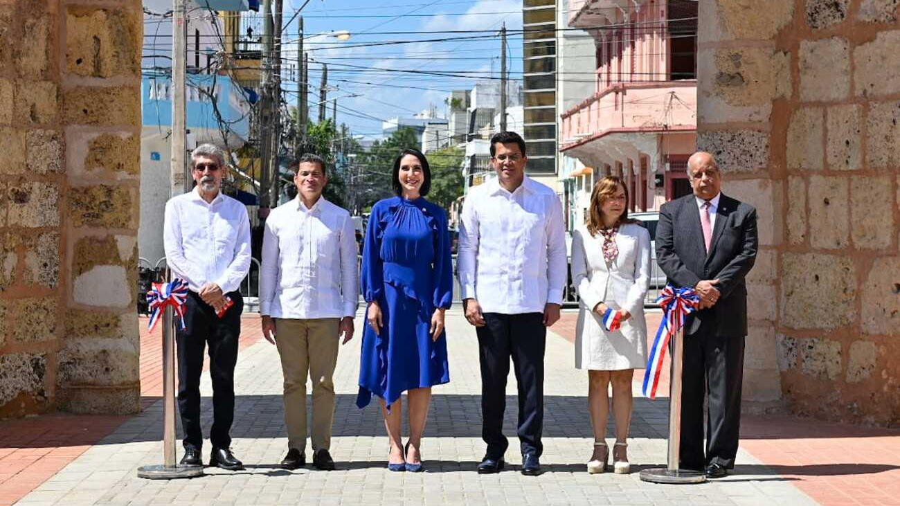 Santo Domingo.- El ministro de Turismo, David Collado, acompañado de la Primera Dama, Raquel Arbaje, entregó este lunes completamente restaurada la histórica Puerta de la Misericordia, en la Ciudad Colonial, con una inversión superior a los 17 millones de pesos.
