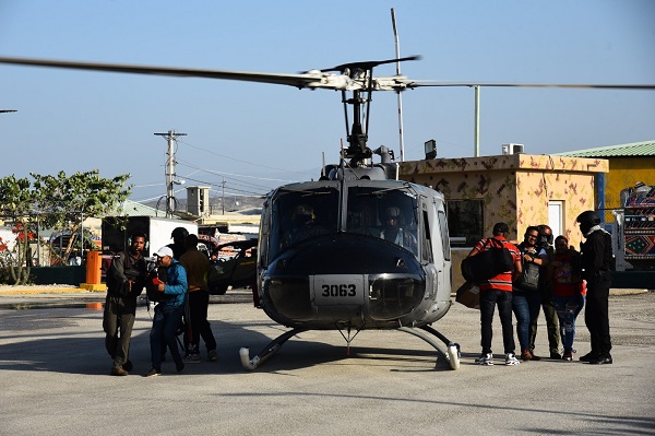 Se trata de 15 hombres, 9 mujeres y 6 menores de edad, que despegaron desde la Embajada Dominicana en Haití y aterrizaron en el helipuerto de la Fuerza de Tarea Conjunta e Interagencial de Jimaní, provincia Independencia.