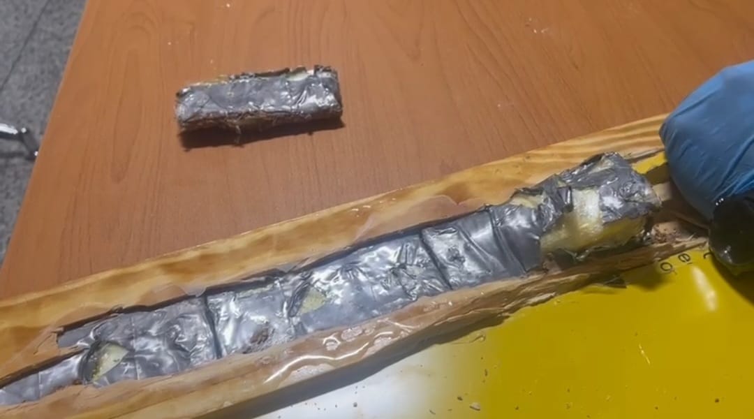 En presencia de un fiscal se procedió a abrir la caja, encontrando dentro una mesa de jugar dominó, en cuyos laterales se ocuparon 16 láminas de cocaína, incrustadas entre la madera, con un peso aproximado a los dos kilogramos.