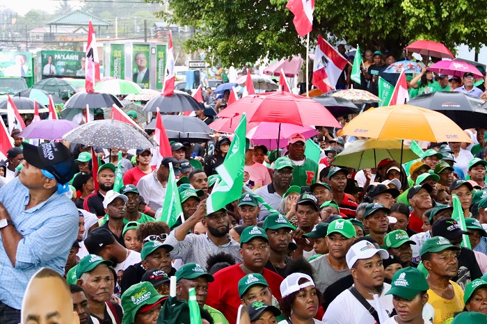 Leonel Fernández habló bajo un torrencial aguacero que caía en Monte Plata, el cual no impidió a la multitud permanecer en el lugar para escuchar el candidato presidencial del partido Fuerza del Pueblo (FP) y organizaciones aliadas, que acudió a respaldar al candidato a senador de esta provincia, Juan Hubieres, y los candidatos a diputados.