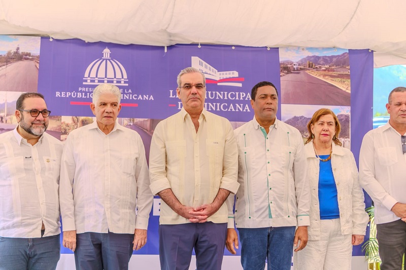 El presidente de la República Luis Abinader junto al presidente de la Liga Municipal Dominicana (LMD), Víctor D´Aza, inauguraron varios proyectos de asfaltado en el municipio de Constanza, provincia La Vega, ejecutados con la inversión del programa de Apoyo a los Gobiernos locales que implementa la LMD con fondos de la Presidencia.