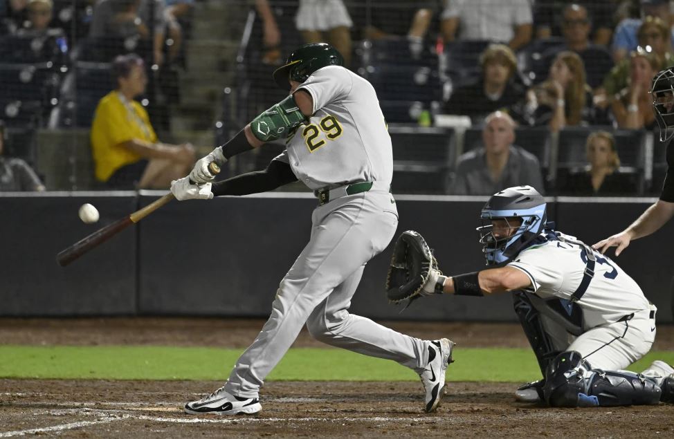 El noveno bate Max Schuemann, quien jugó de inicio en lugar de Jacob Wilson –el segundo mejor bateador de las mayores que fue descartado a última hora por una molestia en el tendón de la corva derecha– trabajó un boleto ante Mason Montgomery (1-2) antes del turno de Wynns como emergente.