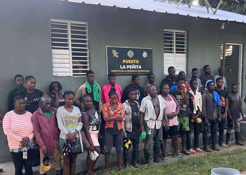 Miembros del Ejército, asignados para servicio en el puesto de chequeo de Hatillo Palma, en la provincia de Montecristi, detuvieron a 34 nacionales haitianos en estatus migratorio irregular.