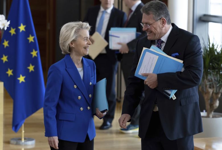 La UE, el mayor socio comercial de Estados Unidos y el bloque comercial más grande del mundo, tenía programado imponer “contramedidas” a partir del lunes a medianoche, hora de Bruselas (6 p.m. EDT). La UE negocia acuerdos comerciales en nombre de sus 27 países miembros.