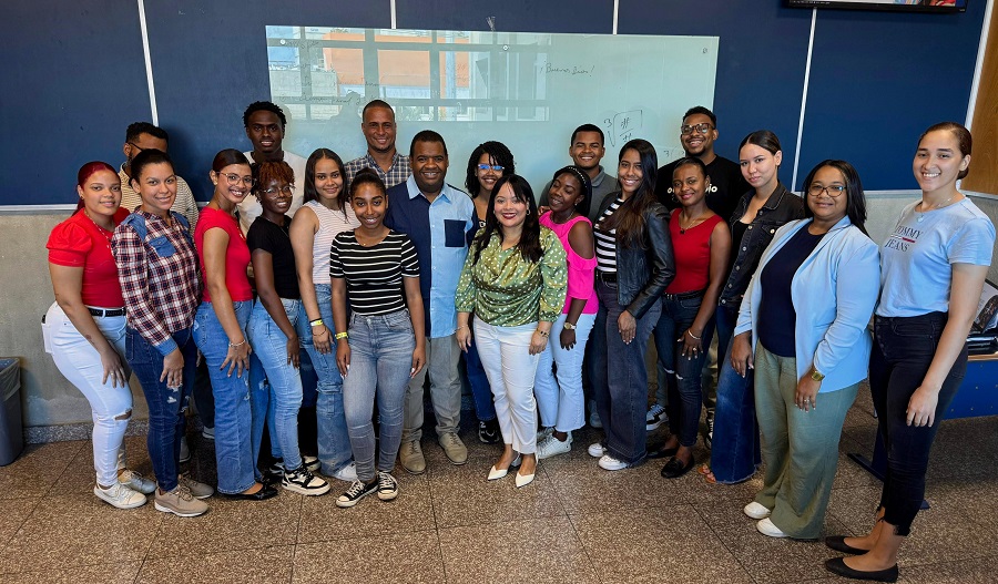 La experta en relaciones públicas, Mabel Alcalá, sostuvo un conversatorio con estudiantes de Comunicación Social de la Universidad O&M, como parte de la asignatura Comunicación Televisiva II, que imparte el maestro José Ramón Suero, en el que abordó la importancia de las relaciones públicas como herramienta clave para conectar con los medios televisivos.