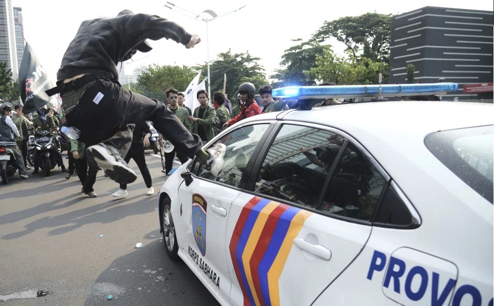 YAKARTA, Indonesia (AP) — Varias ciudades de Indonesia registraron protestas y la tensión se disparó en todo el país el viernes, un día después de que un repartidor fuera supuestamente atropellado por un vehículo policial blindado durante choques entre las fuerzas antimotines y los estudiantes que protestaban contra las asignaciones de los legisladores.