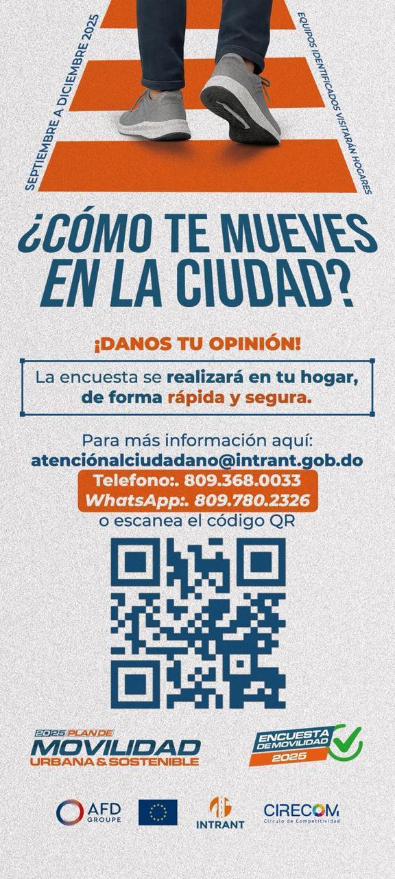 El Instituto Nacional de Tránsito y Transporte Terrestre (INTRANT) informó que este lunes 15 de septiembre dará inicio a la Encuesta Domiciliaria de Movilidad 2025, un levantamiento clave que permitirá actualizar los datos de cómo se mueven los habitantes del Gran Santo Domingo y municipios cercanos, con el propósito de diseñar soluciones más efectivas en el tránsito y el transporte público.