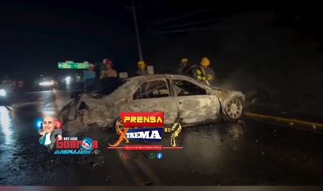 La unidad contra incendios del Cuerpo de Bomberos del municipio de Baní llegó al lugar y apagaron el vehículo que se quemó por completo, una ambulancia 9-1-1 trasladó al chofer hasta el Hospital Nuestra Señora de Regla.