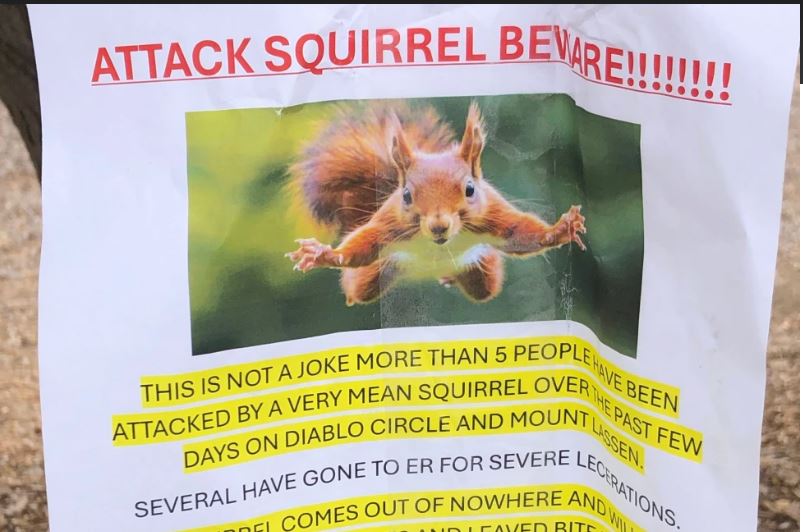 Ahora se han colocado volantes que advierten a los residentes que la ardilla no es una broma y que más de cinco personas han sido atacadas por una “ardilla muy mala” que “sale de la nada”.