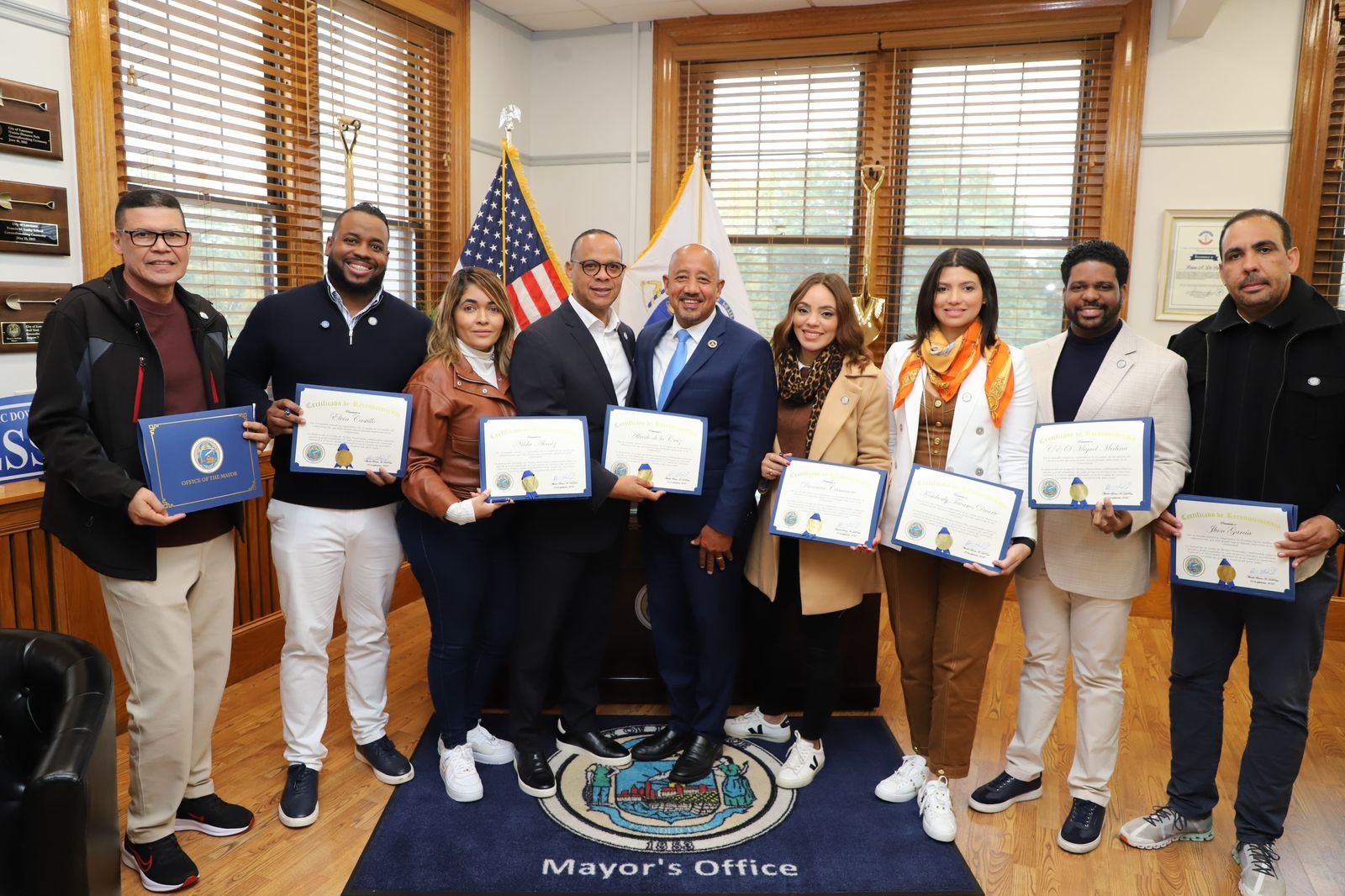 Lawrence, Massachusetts.– El alcalde de esta ciudad, Bryan De Peña, entregó reconocimientos especiales al Grupo de Medios Panorama, al doctor Ricardo Nieves y a los integrantes del programa Panorama de la Mañana: Elvin Castillo, Alfredo de la Cruz, Dannira Caminero, Kimberly Taveras y Nilda Analiz, por la transmisión especial realizada en Boston, Estados Unidos.