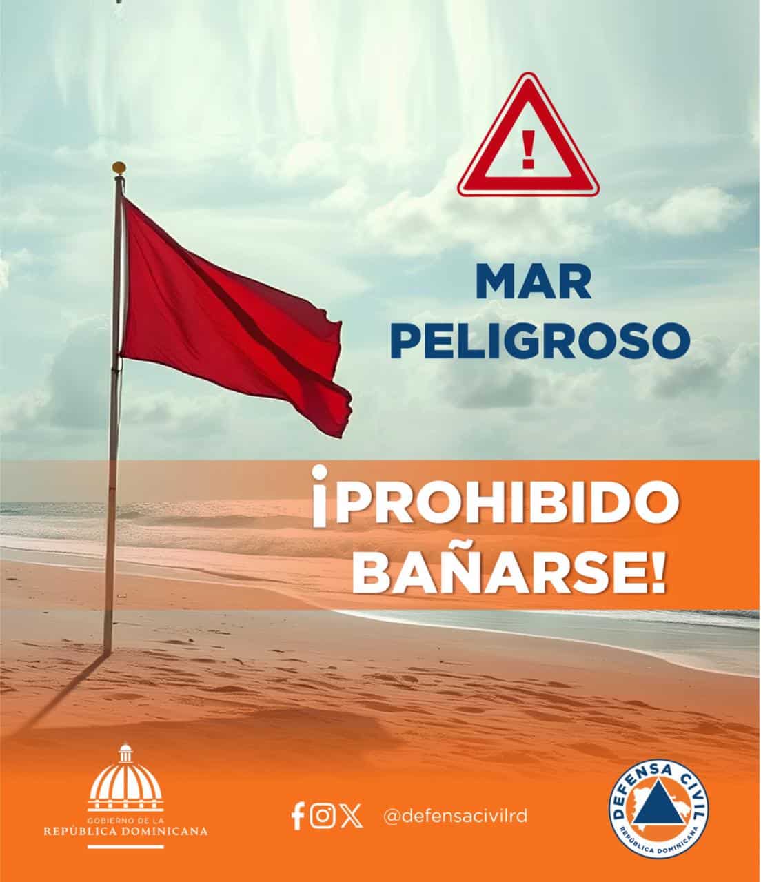 El Comité de Prevención, Mitigación y Respuesta (CPMR) de Puerto Plata ordenó este jueves la colocación de bandera roja en todas las playas del litoral costero de la provincia, debido a las condiciones adversas en el océano Atlántico.