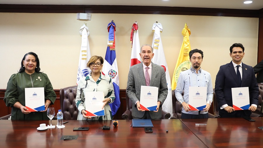 El acto estuvo encabezado por el ministro de Educación Superior, Ciencia y Tecnología, doctor Franklin García Fermín; la rectora de UTECO, Marilín Díaz; el representante residente de JICA en República Dominicana, Kota Sakaguchi; y autoridades de la Universidad de Kochi, Japón, institución que aporta su experiencia en el desarrollo de proyectos de industrialización rural.