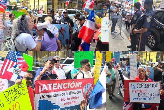 NUEVA YORK.- Decenas de quisqueyanos pertenecientes a diversas organizaciones sociales y comunitarias en esta ciudad protestaron el pasado fin de semana frente al consulado dominicano contra la política del presidente Luis Abinader, y acusaron a las autoridades consulares de llamarle un contingente policial y amenazar con llamar a Inmigración.