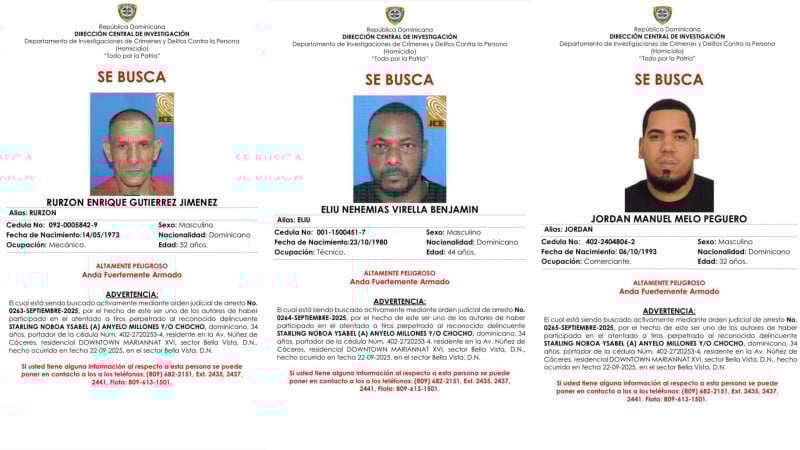 Los tres hombres fueron identificados como Rurzon Enrique Gutiérrez Jiménez (alias “Rurzon”), de 52 años; Eliu Nehemías Virella Benjamín (“Eliu”), de 44, y Jordan Manuel Melo Peguero, de 32.
