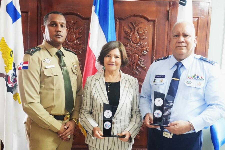 La Gobernadora Yadira Báez felicitó al coronel José Ramón Reyes Suárez por el trabajo realizado en todos los aspectos institucionales, resaltando su liderazgo, visión y compromiso con la educación técnica en beneficio de la juventud dominicana.