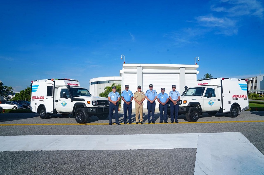 El Ministerio de Defensa (MIDE), a través de la Industria Militar Dominicana (IMDOM) entrega de cuatro modernas ambulancias todo terreno al Cuerpo Especializado en Seguridad Aeroportuaria y de la Aviación Civil (CESAC), con el objetivo de reforzar las capacidades de respuesta ante emergencias médicas en los principales aeropuertos del país.