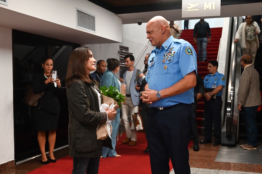 A su arribo, la distinguida funcionaria fue conducida al Salón de Embajadores, donde fue recibida por el general de brigada piloto Enmanuel Souffront Tamayo, director general del CESAC, y la Encargada de Negocios de la Embajada de los Estados Unidos en la República Dominicana, Patricia Aguilera.