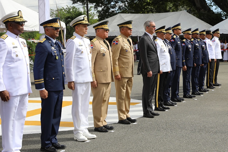 El jefe de Estado estuvo acompañado por los ministros de Defensa, teniente general Carlos Antonio Onofre Fernández; de Educación Superior, Ciencia y Tecnología, Franklin García Fermín; del viceministro de Seguridad Interior, Antonio Palma en representación de la ministra de Interior y Policía, Faride Raful; el director general de la Policía Nacional, mayor general Ramón Antonio Guzmán Peralta y el subdirector general de la institución, general Juan Hilario Guzmán Badia.
