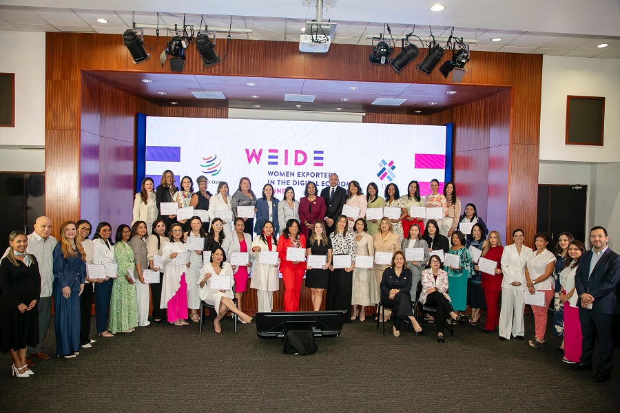 La Secretaría de la Organización Mundial del Comercio (OMC) representada por Johanna Hill, Directora General Adjunta; y el Centro de Comercio Internacional (ITC); representado por Pamela Coke-Hamilton, Directora Ejecutiva, en alianza con el Centro de Exportación e Inversión de la República Dominicana (ProDominicana), representado por su Directora Ejecutiva, Biviana Riveiro Disla, con la presencia del Ministro Victor Bisonó, Ministro de Industria Comercio y Mipypmes (MICM), presentaron oficialmente el Fondo para Mujeres Exportadoras en la Economía Digital (WEIDE, por sus siglas en inglés) en República Dominicana con el objetivo de incrementar la participación femenina dominicana en el comercio internacional.
