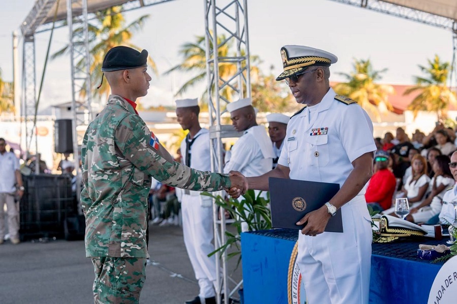 Acompañaron al ministro de Defensa la gobernadora provincial de Peravia, Ángela Yadira Báez, así como el vicealmirante Juan B. Crisóstomo Martínez, comandante general de la Armada, quien realizó la entrega del reconocimiento al graduado destacado de la promoción, en atención a su desempeño académico, dedicación, disciplina y vocación de servicio.