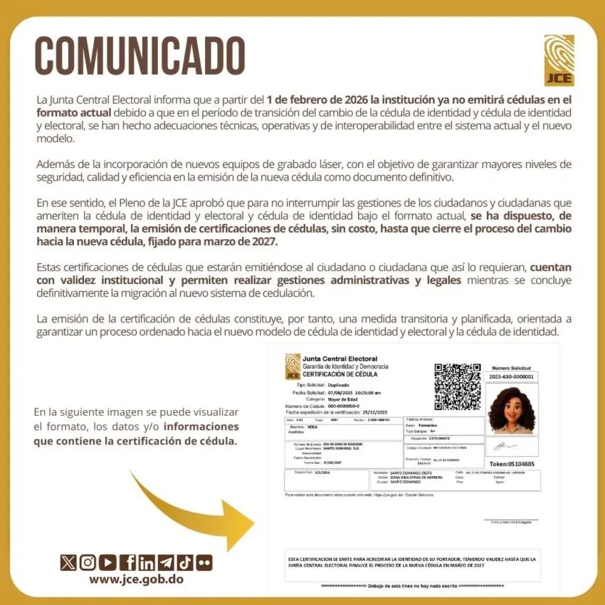 Home PORTADAJCE dejará de emitir cédulas actuales desde febrero 2026