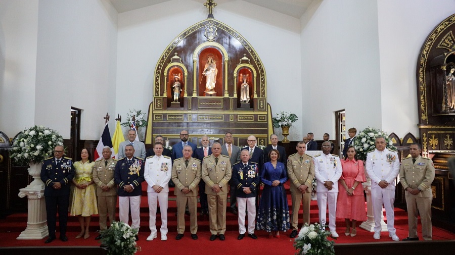 La agenda inició con una solemne eucaristía celebrada en la Iglesia Nuestra Señora del Carmen, ubicada en la sede central de la FARD, ceremonia encabezada por el ministro de Defensa, teniente general Carlos Antonio Fernández Onofre, y el comandante general de la institución aérea, mayor general piloto Floreal Suárez Martínez.